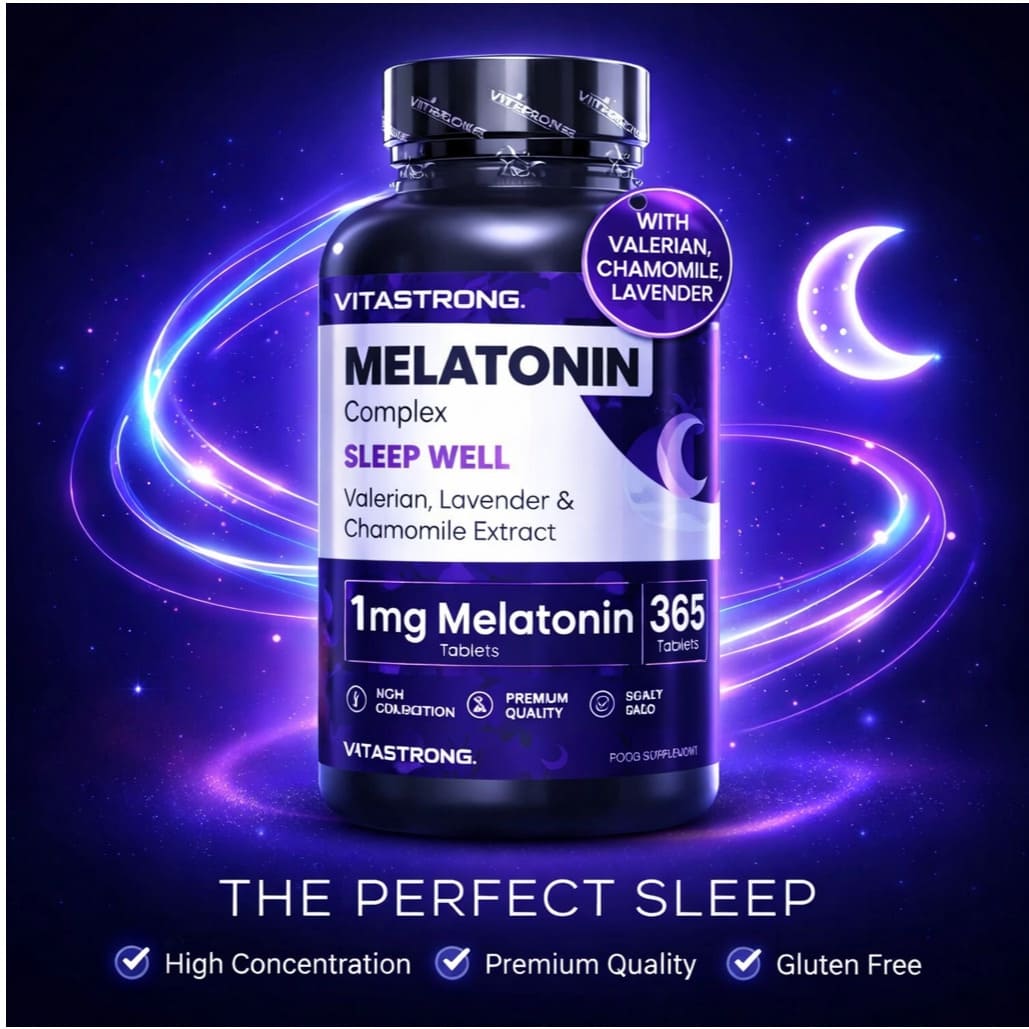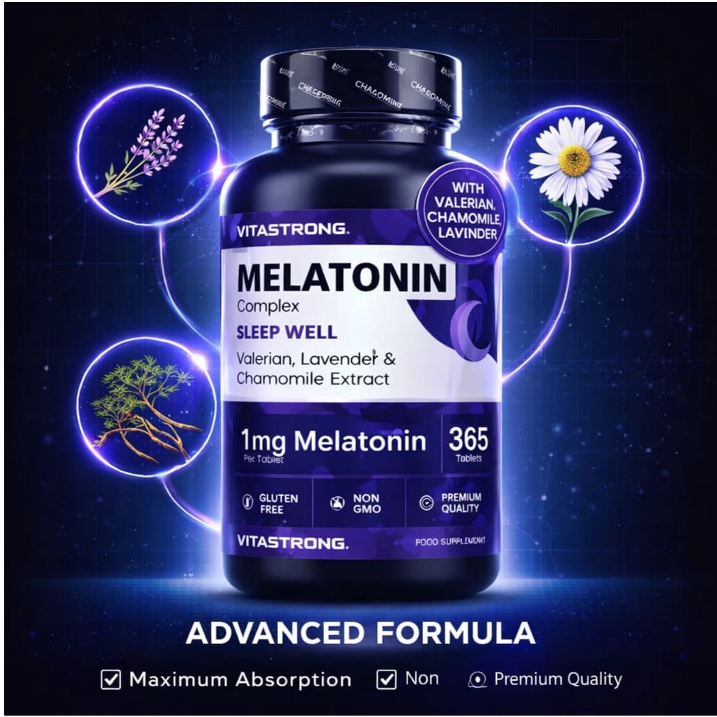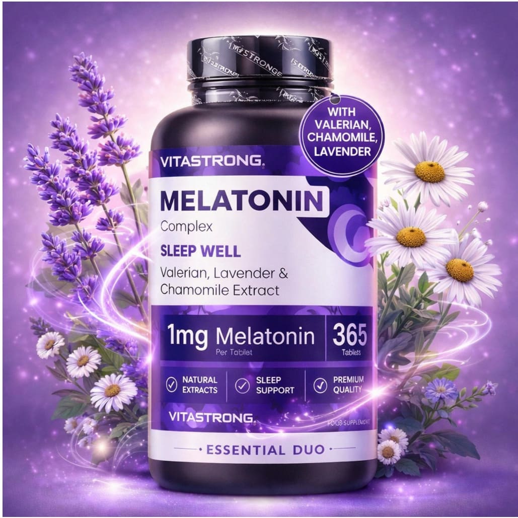 Struggling to unwind after long UAE days? Melatonin Complex 365 Capsules supports natural sleep-wake balance with melatonin, valerian, chamomile, and lavender. Gluten-free, non-GMO formula in a one-year supply. Add calm consistency to your nightly routine.